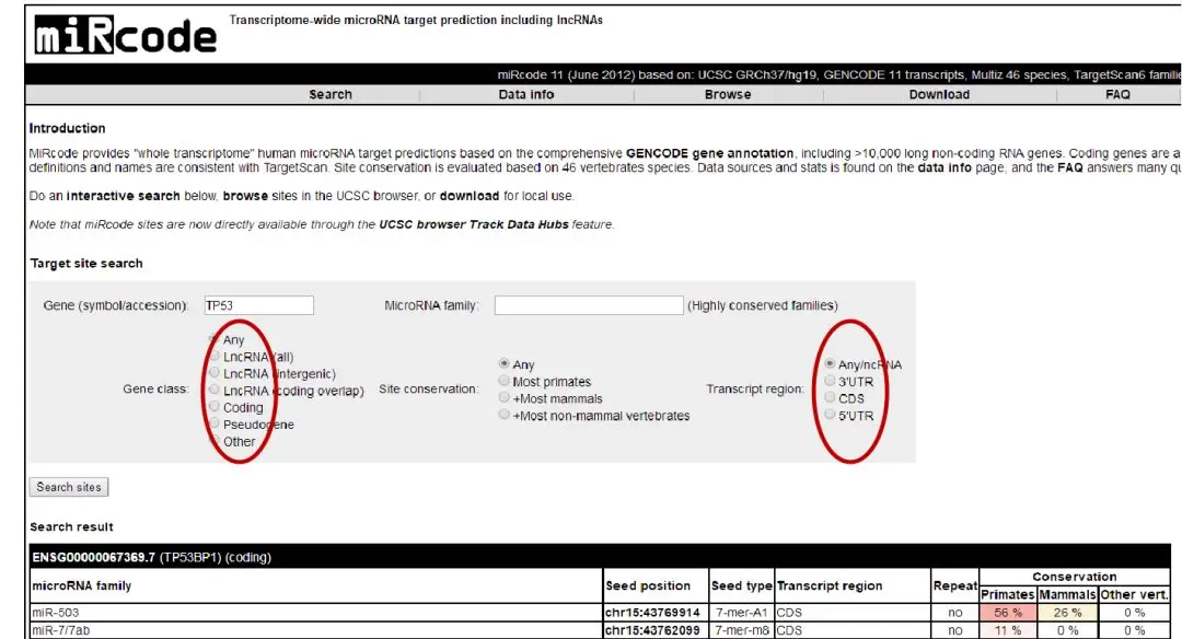 miRcode与TargetScan相比,主要增加了ncRNA和非3’UTR区的检索。