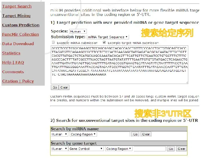 miRDB比TargetScan功能更多,除了检索3’UTR区外,还能搜索编码区和5’UTR区,以及对给定序列进行匹配。