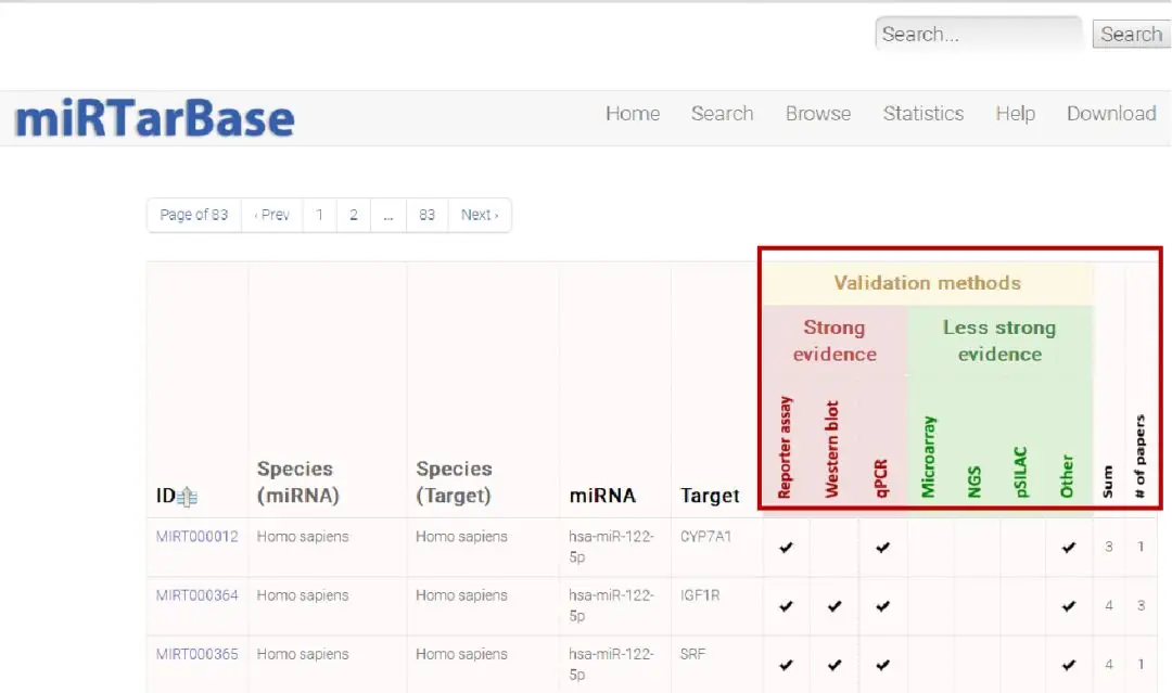 这些数据库收录各种手段检测过的miR-Target数据,研究者可以查看靶基因是否已经被研究过或者研究的程度等等。