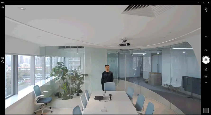 完成安装之后,我们就要来实测一下这个会议系统了。首先还是摄像头部分,它支持4K画质,为会议提供了一个非常高清的视频体验。并且前面提到,摄像头还支持左右平移以及上下俯仰,有效覆盖会议室的各个角落。实际体验可以看到,它旋转平移的过程,是相当流畅的。
