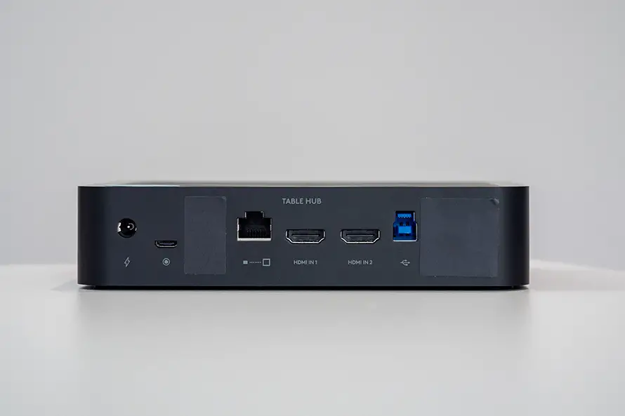而TableHub则包括了电源接口、麦克风接口、网线接口、两个HDMI输入接口、USB数据接口。
