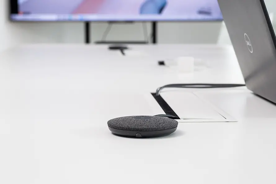 罗技CC5000e最显著的特点在于采用了模块化设计,这样的好处在于能够很好地适应不同类型的会议室布局。每个公司的会议室,布局各异,有长条形的、方形的、圆形的,甚至是不规则形,这为会议系统的部署提出了一定的挑战。CC5000e的模块化设计,就能很好的解决这一问题。