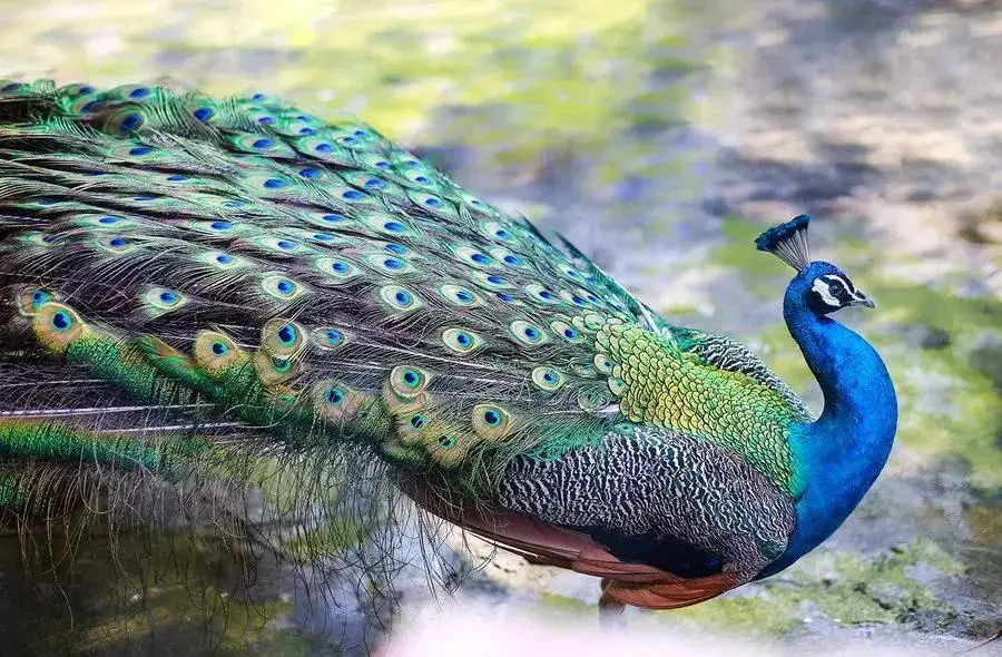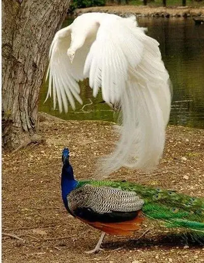 孔雀有绿孔雀和蓝孔雀。目前经过技术培育,又有了花孔雀,以及变种白孔雀。