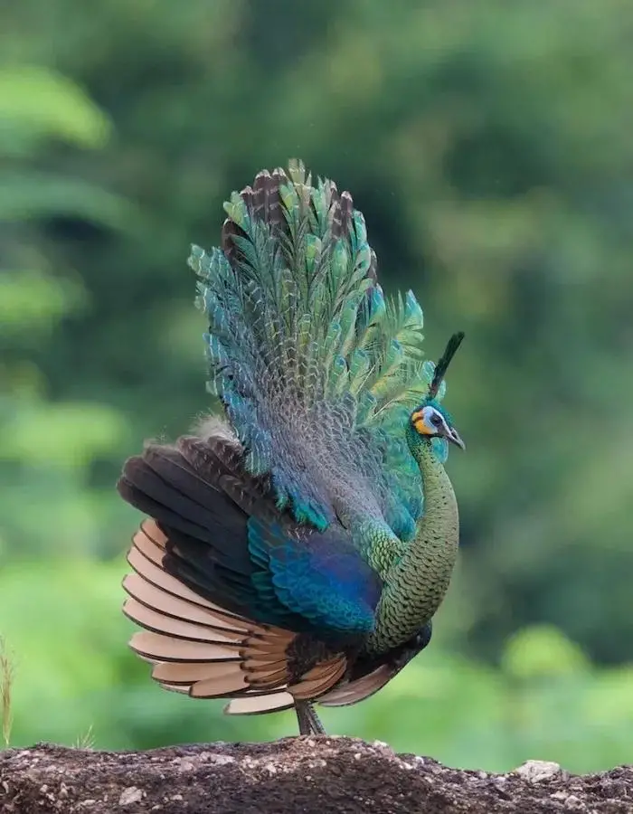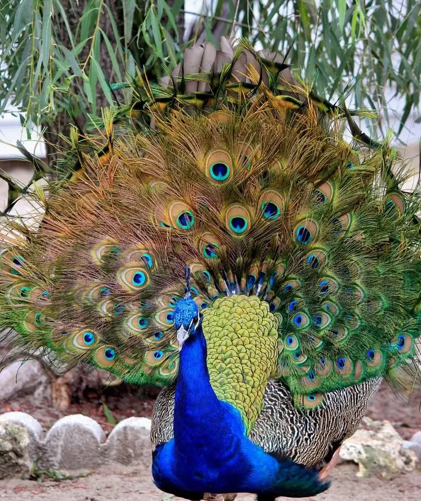 自我保护时。遇到敌人时,孔雀的大尾屏就是防御敌人进攻的武器。它抖动的花眼睛乱颤,眼状花斑会让敌人摸不清情况,不敢随意接近。