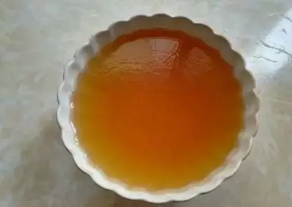 第六步:煮好的白桃乌龙茶倒进大碗里,放到凝固,具体时间看装茶水的碗的大小,装的分量少,凝固的就越快。
