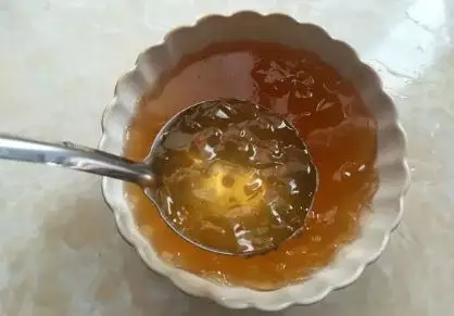 第七步:凝固好的白桃乌龙茶冻,用勺子挖成小块,老人和孩子喝的话,尽量挖小块一些。凝固好的白桃乌龙茶冻可以放冰箱里冷藏,最好在3天内吃完。