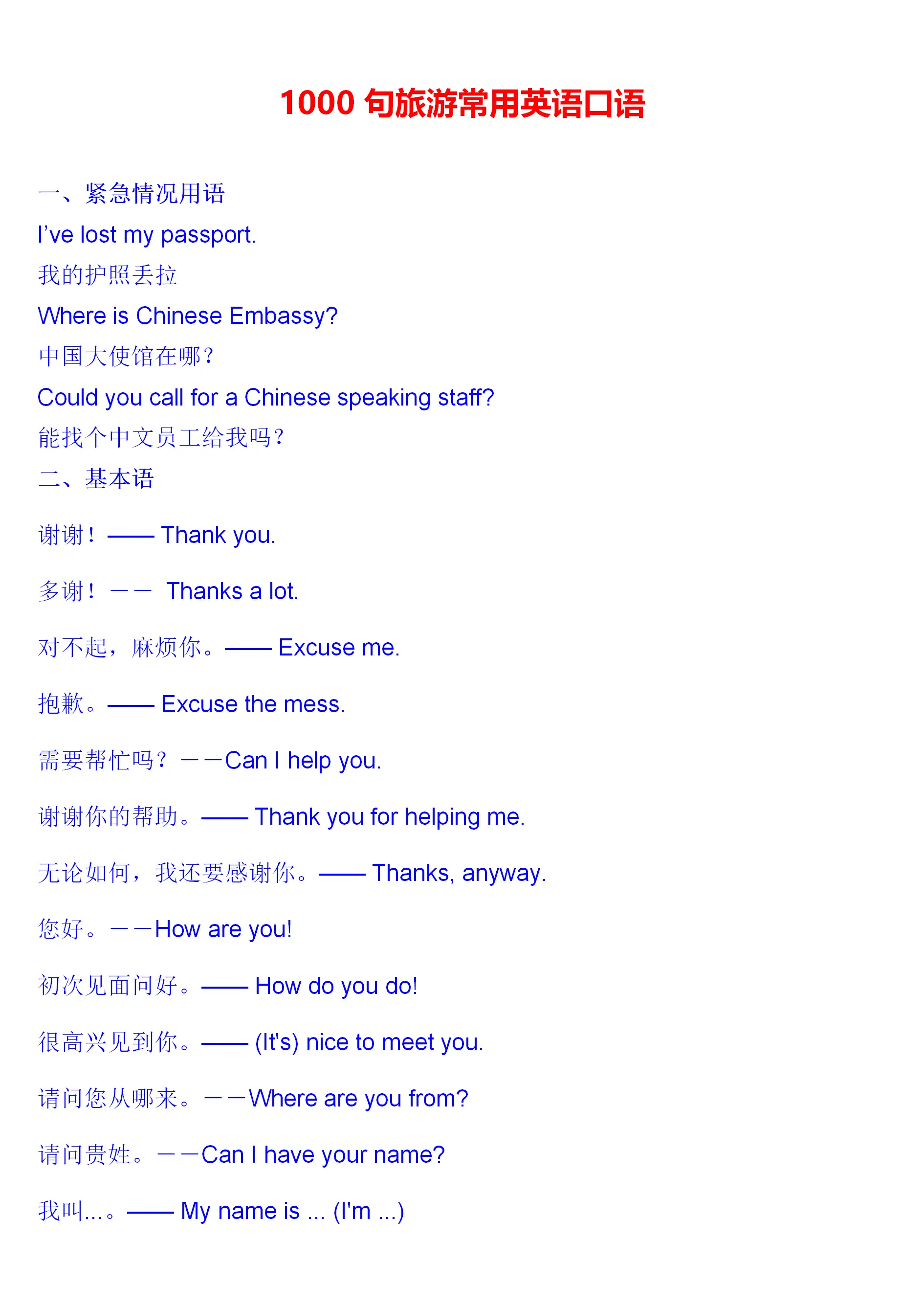 好了,今天就说到这里了,可以帮到大家也是一件非常开心的事情,已看完旅游常用英语口语大全「最新1000句最常用英语口语」,但没懂?还是不明白?建议多阅读几遍就可以完全理解了哈!
