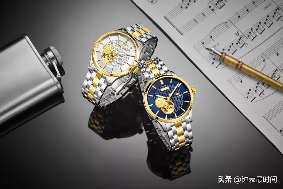 表盘镂空 2颗真钻;白面金钉/蓝面金钉